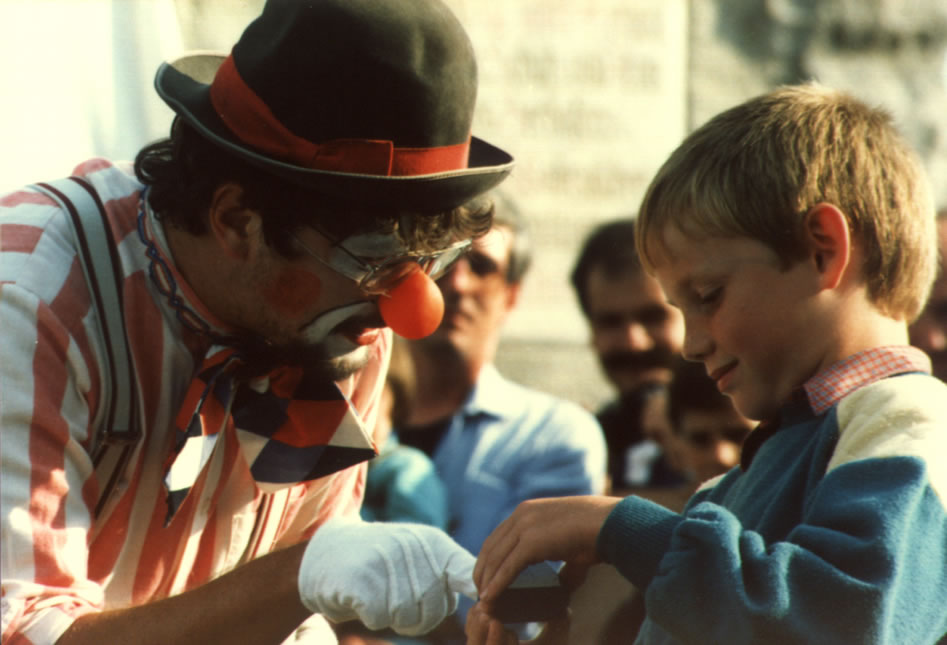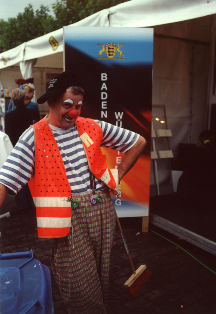 Clown Beppo ist Roland Kurz, geboren 1960, Dipl. Sozialpädagoge, Erfahrung in der Arbeit mit Kindern, Familien und behinderten und suchtkranken Menschen,